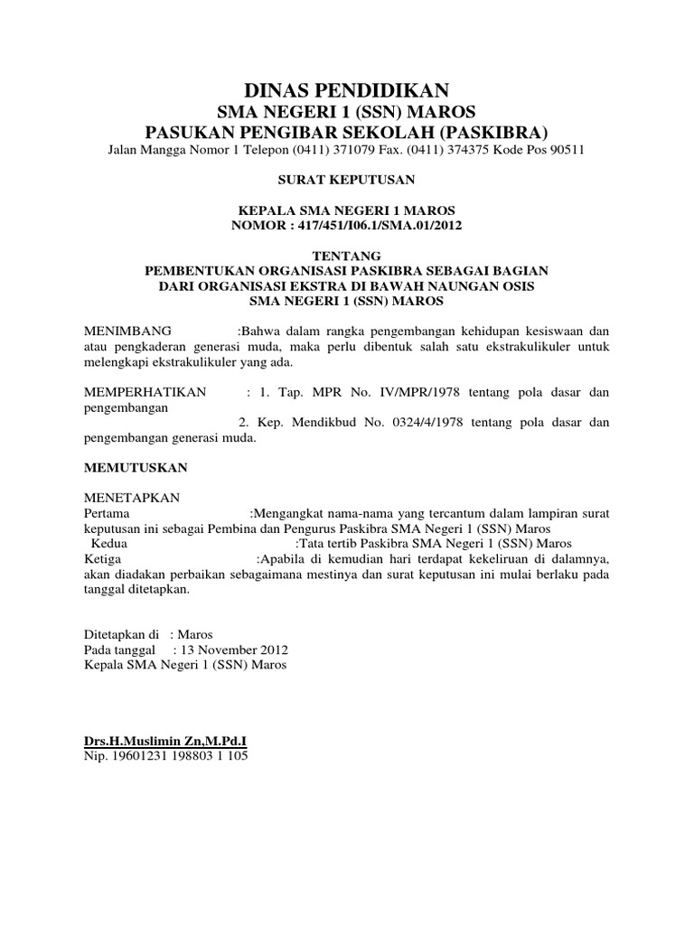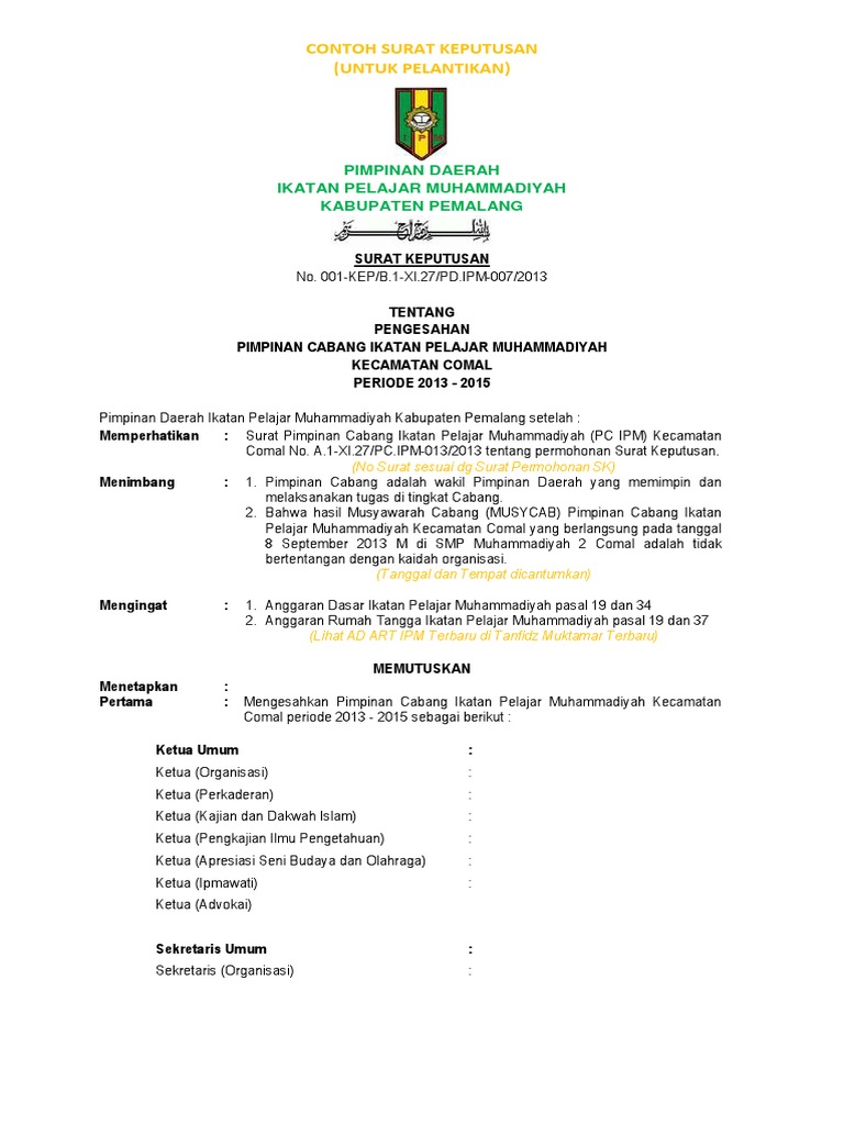 Sk Struktur Organisasi from imgv2-1-f.scribdassets.com Contoh surat pengunduran diri dari organisasasi osis. Salah satunya adalah surat keputusan lamaran kerja. Barito no 35 a madiun 63855. Setelah dikeluarkan surat keputusan ini, organisasi tidak bertanggung jawab atas semua tindakan yang dilakukan secara pidana maupun perdata yang mengatas namakan osim man cilacap. Kumpulan contoh surat keputusan untuk berbagai keperluan, seperti surat keputusan organisasi, keputusan pengangkatan, kepala sekolah dll dalam artikel ini, saya akan memberikan beberapa contoh surat keputusan berikut cara membuatnya secara lengkap untuk anda. Contoh surat keputusan pemberhentian anggota have a graphic from the other.contoh surat keputusan pemberhentian anggota it also will feature a picture of a surat rekom pemberhentian. Surat keputusan tim formatur dan mid formatur. Keputusan kongres iii perhimpunan mahasiswa hukum indonesia nomor :